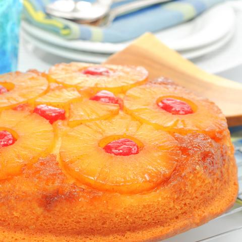 Pour the batter over the pineapple slices in the rice cooker pan and cook in a rice cooker for 1 hour to 1.5 hours or till the cake is done.