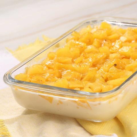 Add the stewed pineapple on top of the pudding and refrigerate.