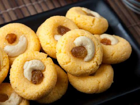 Roll the mixture into balls. Press the middle of the ball using thumb to fix the cashew nut and the raising.