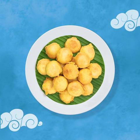 Make small balls from the desiccated coconut mixture and dip it into the batter