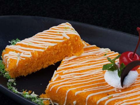 Top up with the saffron coconut mixture and flatten on top. Place in fridge to cool for one hour before cutting the layered Burfi into desired shapes