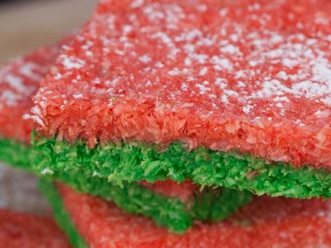 බඳුනකට දිසිදි පොල් සහ සීනි මිශ්ර කරගන්න. MILKMAID දමා මිශ්රකරගන්න. බඳුන් දෙකකට සමානව බෙදා වෙන් කරගන්න. රතු පැහැති ආහාර වර්ණක බිංදු කිහිපයක් බඳුනට දමා හොඳින් හැඳි ගා මිශ්ර කරගන්න. සාදාගත් බඳුනකට දමා තදකරගන්න. අනෙක් ඉතිරි කොටසට කොළ පැහැති ආහාර වර්ණකයක් එකතු කරගන්න. නැවත බේස් එක දමා තද කරගන්න. මතුපිට හොඳින් සුමට කරගන්න. ආවරණය කර ශීතකරණයේ පැයක් පමණ සෙට් වන්නට තබන්න.