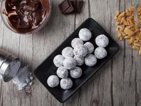 තේ හැන්දකින් මිශ්රණය ගෙන කුඩා ගුලි හැඩයට සකසා ගන්න. ලෑල්ලක් මතට අයිසින් සීනි අතුරා සාදාගත් බෝල උණුසුම තිබියදීම අයිසින් සීනි මත තවරාගන්න.