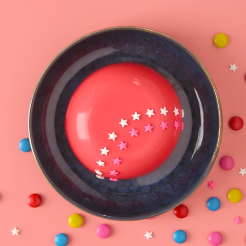 ஜெலட்டின் கரைக்கும் வரை சூடான நீரில் கலக்கவும்.